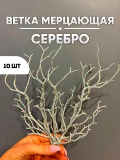 Искусственная зелень, ветка "Мерцающее серебро" 10 штук