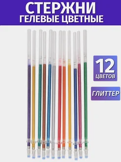 Стержни гелевые цветные Глиттер 12 цветов 12 шт