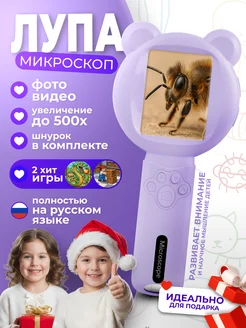 Микроскоп детский карманный с камерой и подсветкой лупа