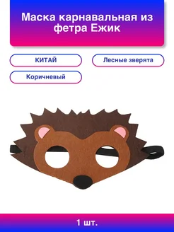 1шт. Маска карнавальная, из фетра, Ежик, Коричневый, 18,5*11