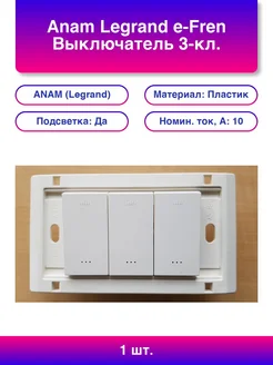 1шт. e-Fren Выключатель 3 кл с Подсветкой