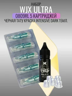 Картриджи для тату 0809RL и черная краска, кожа, колпачки