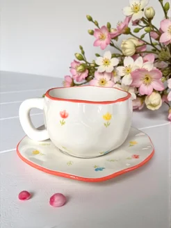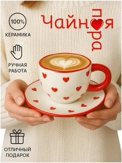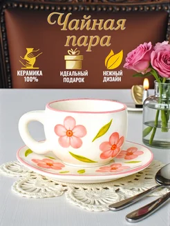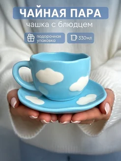 Чайная пара подарочный набор из керамики кружка и блюдце
