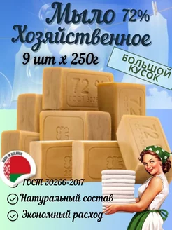 Мыло хозяйственное натуральное для стирки 72% 9 шт по 250г