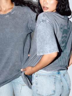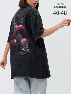 Футболка оверсайз варенка c принтом на спине длинная базовая