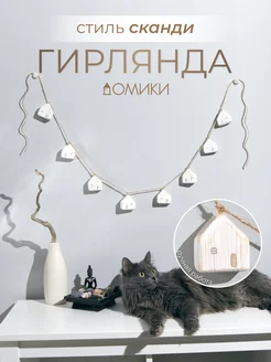 Декоративная гирлянда из деревянных домиков бохо
