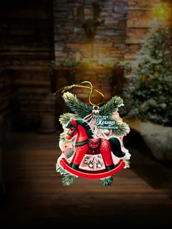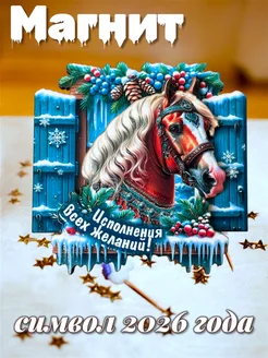 Магнит Новый год 2026 символ года Лошадь деревянный
