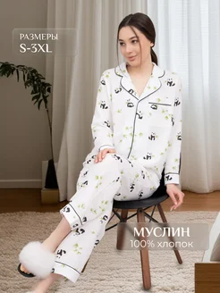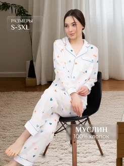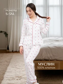 Пижама муслиновая с сердечками со штанами и рубашкой