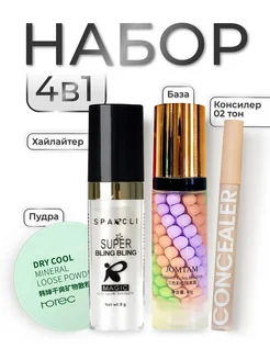 4в1 Набор база под макияж хайлайтер консилер пудра