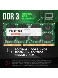 Оперативная память DDR3 для ноутбука 4GB 1600MHz 1.5v