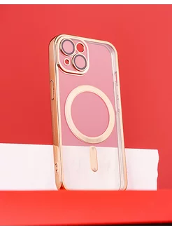Прозрачный чехол с золотой рамкой для iPhone 15