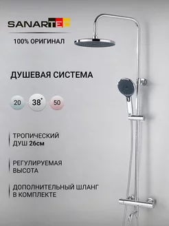 Душевая система тропический дождь с термостатом хром