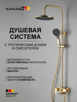 Душевая система с тропическим душем и смесителем золото