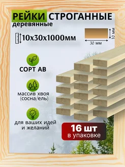 Рейка деревянная, 10х30х1000мм, набор 16шт TriviaMarket