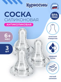 Соска на бутылку силиконовая 6+ мес, 3 шт