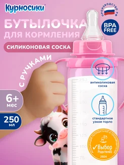 Бутылочка для кормления новорожденных с ручками 250 мл, 6+