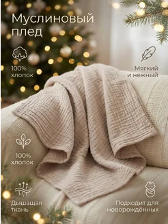 Плед детский для новорожденных муслин на выписку 110х110 см
