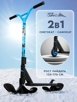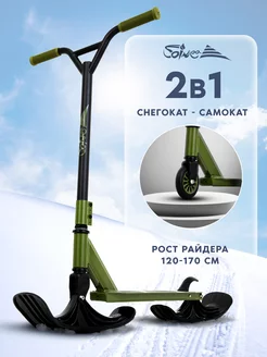 Самокат трюковой 2 в 1 с лыжами для детей и подростков