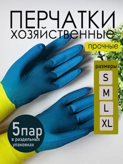 Перчатки резиновые хозяйственные прочные для уборки 5 пар