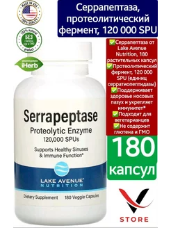 Serrapeptase, серрапептаза, 120 000 SPU 180 капсул