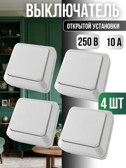Выключатель одноклавишный накладной 4 шт 10А 250В