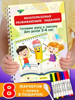 Многоразовые прописи Готовим руку к письму + 8 фломастеров