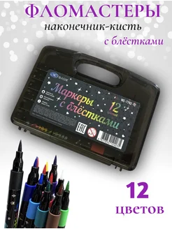 Фломастеры маркеры с блестками на водной основе 12 цветов