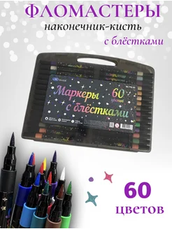 Фломастеры для рисования детские с блестками набор 10 цветов