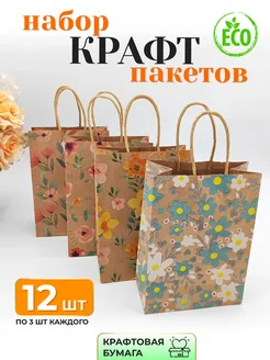 Подарочный пакет новогодний с ручками крафт 12 штук