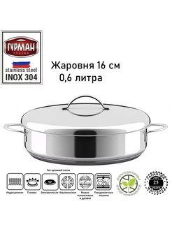 Жаровня 0,6 литра 16 см с крышкой 110216 AISI 304