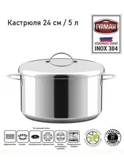 Кастрюля 5 литров 24 см с крышкой 110350 AISI 304