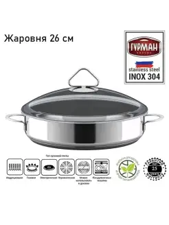 Жаровня 2,4 литра 26 см с крышкой 220226 AISI 304
