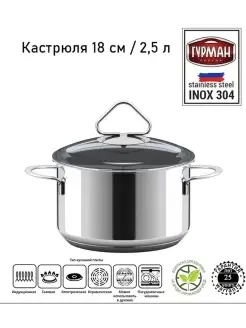 Кастрюля 2,5 литра 18 см с крышкой 220325 AISI 304