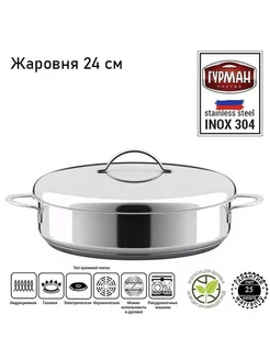 Жаровня 2 литра 24 см с крышкой 110224 AISI 304