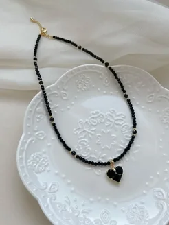 Чокер из черной шпинели с подвеской сердце