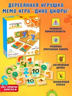 Деревянная игрушка Мемо-игра Дино-цифры