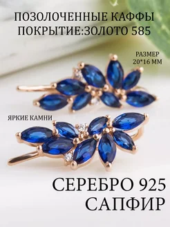 Ювелирные серьги каффы серебро 925 585 с сапфиром