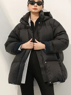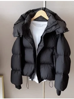 Пуховик зимний короткий оверсайз с капюшоном