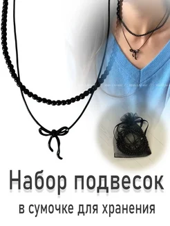 Набор бижутерии - чокер из бусин и шнурок с подвеской