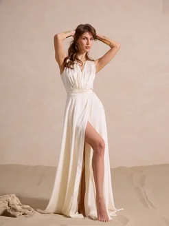 Вечернее свадебное платье с разрезом в пол