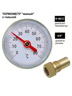 Термометр "малый" с гильзой, 1 4"(0 - 80С)
