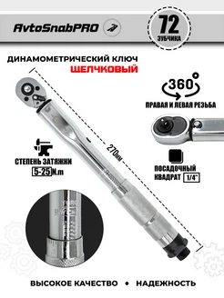 Ключ динамометрический щелчковый для затяжки 1 4" 5-25Nm