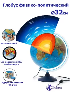 Глобус физико-политический 32 см, с LED-подсветкой + VR очки
