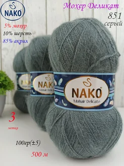 Мохер деликат Mohair Delicate 851 серый 3 мотка