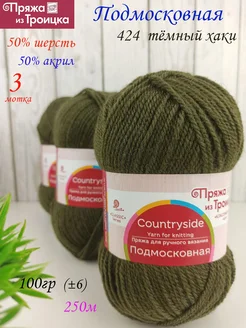 Подмосковная пряжа троицкая 424 темный хаки 3 мотка