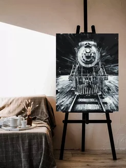 Картина по номерам Поезд Паровоз Локомотив Пейзаж