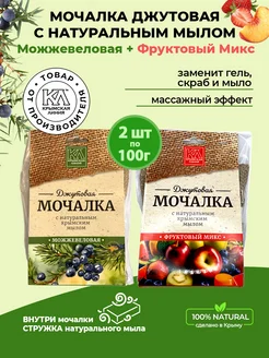 Мочалка джутовая с натуральным мылом для тела и бани 2шт