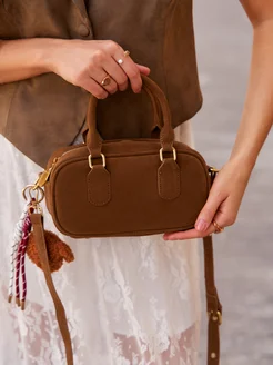 Маленькая сумка из коричневой замши с цепочкой