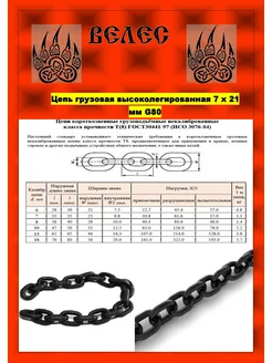 Цепь грузовая высоколигированная 7 х 21 мм G80 х 2м