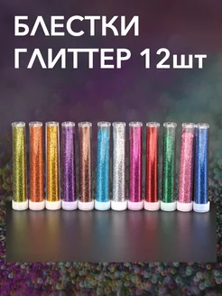 Блестки глиттер в колбах 12 шт для творчества и маникюра